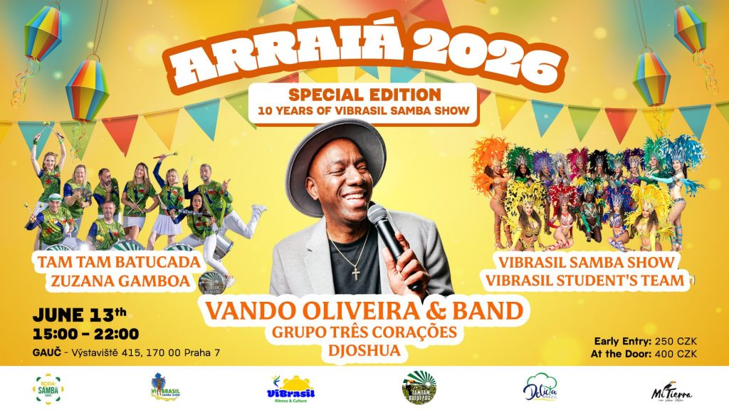 RODA DE SAMBA: ARRAIÁ 2026 – SPECIÁLNÍ EDICE: Oslava 10 let Vibrasil Samba Show Přijďte s námi oslavit speciální edici Roda de Samba při příležitosti 10 let Vibrasil Samba Show! Těšit se můžete na nezapomenutelný den i večer plný brazilských... Read More